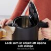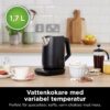 The KT200EU kettle from the NINJA brand is an electric device designed to heat water quickly and efficiently, ideal for both home use and small offices. This kettle has a capacity of 1.7 liters, suitable for preparing several cups of hot water simultaneously, making it a practical choice for families or small groups. Made with a combination of stainless steel and high-quality plastic, it offers durability and a modern look in black that fits various kitchen styles. Its 3000 W power allows fast heating, reducing wait time to boil water—essential for those needing immediate results for infusions, coffee, or recipes requiring hot water. Additionally, the product is adapted for European (EU) plugs, ensuring compatibility and voltage safety. The material combination ensures resistance to daily use and easy cleaning, while the design includes common features in modern kettles such as automatic shut-off and dry-boil protection, standard mechanisms in this product range to guarantee both user safety and convenience. Overall, the NINJA KT200EU is a robust, efficient, and functional kettle that meets basic needs and energy consumption requirements to heat water quickly and reliably.