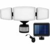 The GALIX 3-head solar spotlight is a robust and functional solar lamp designed to provide powerful and efficient outdoor lighting. Made of plastic, it features a design that includes a 2.5 W solar panel capable of powering the lights with sustainable energy. Its luminous capacity reaches 1000 lumens, delivering bright light ideal for illuminating large areas. It has a presence detection system that automatically activates the light when movement is detected at a maximum distance of 10 meters, increasing efficiency and enhancing security. Its operation is versatile thanks to the ON / OFF / AUTO (sensor) switch, adapting to user needs. It also offers an adjustable lighting duration of 30, 60, or 120 minutes, and up to 1 hour in continuous mode. Its practical design includes a 5-meter cable connecting the solar panel to the spotlight, allowing flexible installation in various locations. Available colors are white and noir, providing options for different styles and preferences. With compact dimensions around 7 cm, this solar lamp is suitable for domestic or professional use in patios, gardens, paths, or areas requiring an autonomous and eco-friendly light source. The durability of the plastic material and the advanced detection system make it a reliable and sustainable solution for outdoor lighting. This product reflects Galix’s commitment to integrating accessible and efficient solar technology into attractive and functional lighting elements.
