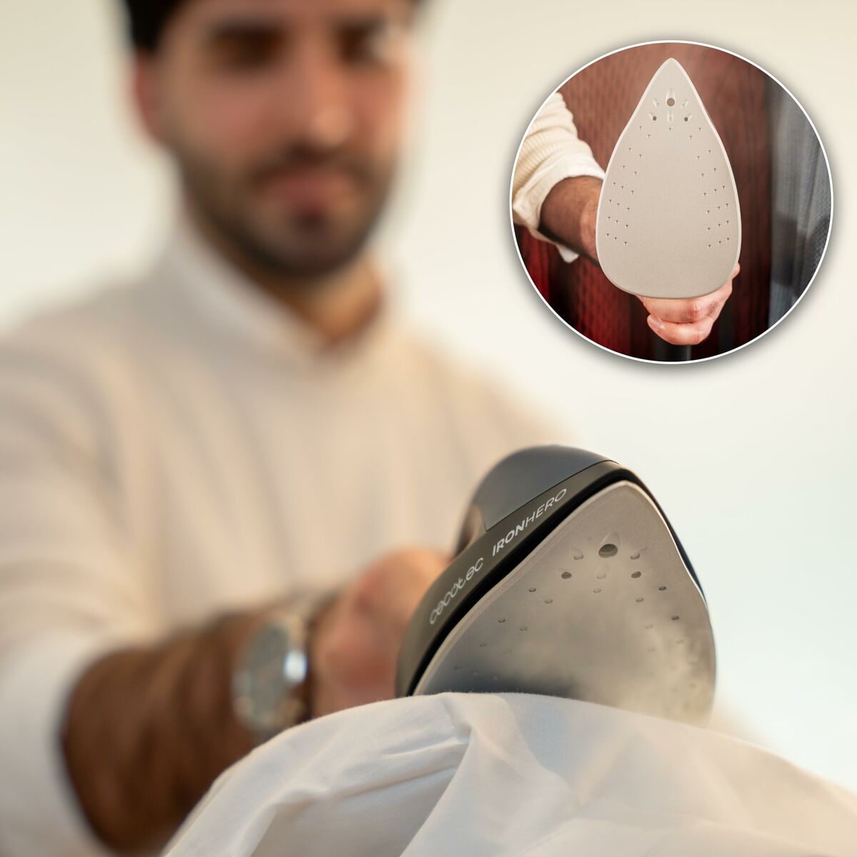 The IronHero V-2400 Station ironing center by Cecotec is an ironing center designed to deliver professional performance for both conventional and vertical ironing, combining power, capacity, and advanced technology to ease garment care. With a 2400 W power, it ensures fast heating and a continuous steam output of 180 g/min thanks to Power Steam technology, ideal for removing wrinkles from delicate fabrics and hard-to-iron garments. Its system also provides a powerful steam boost of 370 g/min, effectively tackling the toughest wrinkles, even on thick fabrics. The Turbo Slide ceramic soleplate offers smooth and gentle gliding, with high scratch resistance to preserve fabric quality and ensure even ironing. This model features a large 1.2-liter water tank, allowing extended sessions without refills, facilitating work on bulky or multiple garments. It is equipped with a Cyclo Clean anti-scale system that extends the appliance’s lifespan and ensures clean, consistent steam. Additionally, it has double heating elements in both the base and soleplate to distribute heat evenly and optimize efficiency with each pass. For intuitive control and adaptability to different fabric types, it includes a LED display that allows easy selection of 3 steam modes, also incorporating the Smart Auto Off intelligent automatic shut-off function to ensure safety and reduce energy consumption when inactive. Its grey color design provides a modern and functional look, while the solid, ergonomic structure ensures comfort and stability during use. Overall, the IronHero V-2400 Station combines advanced technologies and practical features that make ironing efficient, safe, and suited to everyday or professional needs. It stands as a reliable solution for those seeking a robust, powerful, and easy-to-use ironing center.